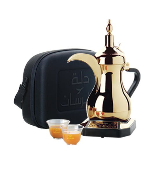 دلة الفرسان السيف الكهربائية 850 واط استيل في شنطة قماش مع فناجيل وتمرية ومكيال