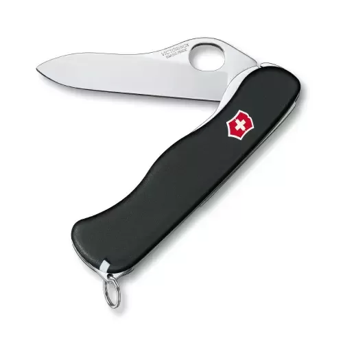 سكين سويسري حلقة علوية مسهلة للفتح مع منقاش وملقط 0.8413.M3 SENTINEL O/H BLACK