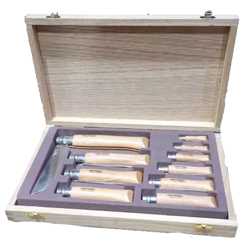 طقم سكاكين اوبينل بصندوق خشب 10 حبات جميع الاحجام 1194/7